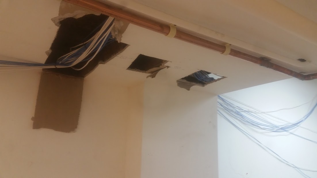 We will need to install some wiremolding for the wiring that we are unable to run across the ceiling.