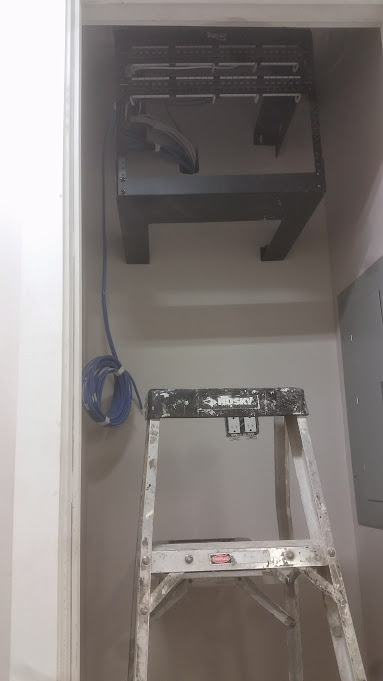 The first order of business was to run all new wiring to each location (double runs as usual, even though they only have a single internet provider and single router). You have to think about future-proofing your installations, and physically isolating phone and computer networks is always a good idea.