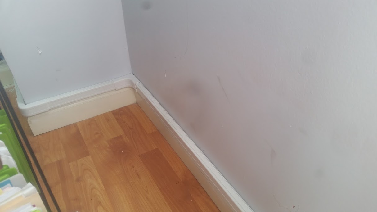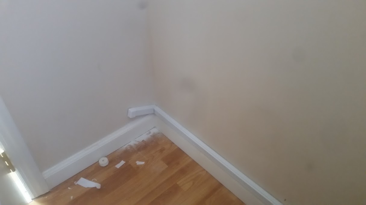 Even where we attempted to hide the holes with the wiremolding, he had a problem with the "angle" that a 4 inch piece of molding was installed at in attempts to hide the holes.