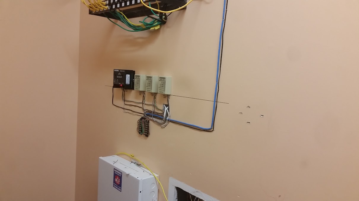 The patch panel, DVR and alarm panel in the photo were existing and not installed by me or my crew. I only installed and connected the 4 relays and 2 power supplies, wires also already were run to where they needed to go to.